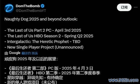 游戏博主DomTheBomb整理了顽皮狗2025年及以后的项目前瞻:炒股开户精通卓信宝配资